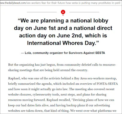 The Daily Beast: Sex Workers Fear for Their Future: How SESTA Is Putting Many Prostitutes in Peril.